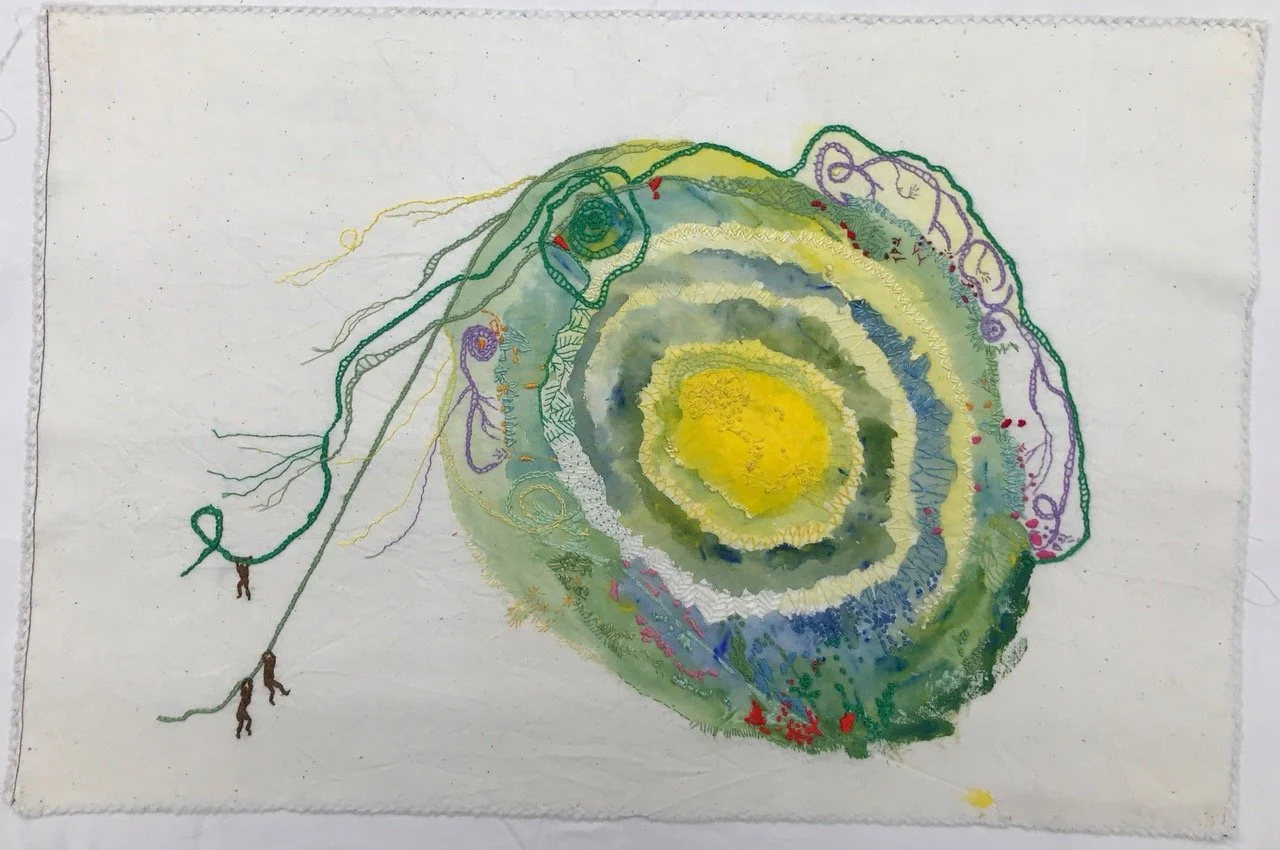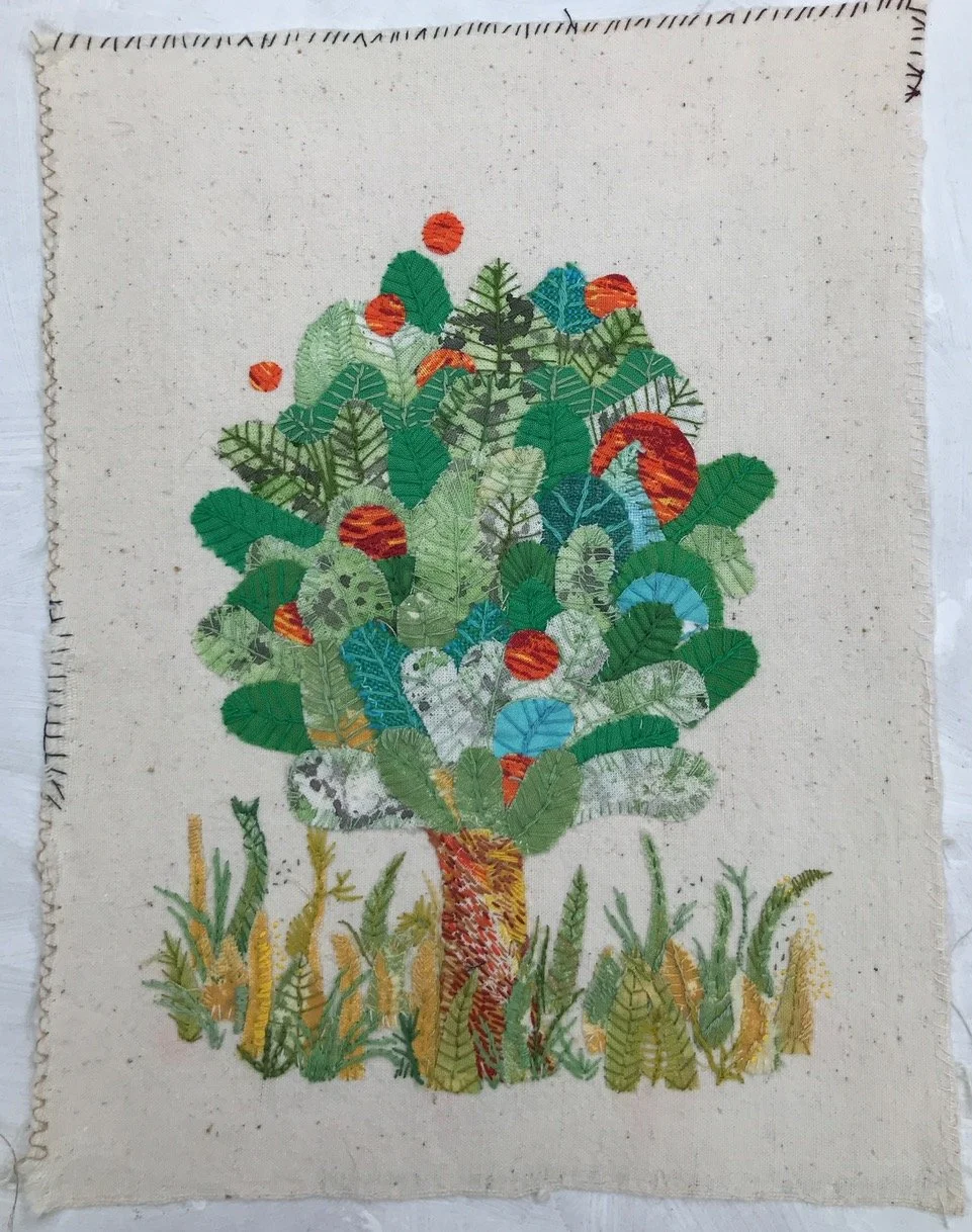 Jag älskar färg. Jag har samlat på mig en hel del tyger, färger, trådar och brodergarner genom åren. Jag målar, färgar in eller skapar mönster med färgerna på tygerna. Sedan har jag massor av material att inspireras av och jobba vidare med. Nya idéer måste prövas och ingenting blir det andra likt. Inga lappar är för små eller trådar för korta för att inte kunna användas i någon bild.