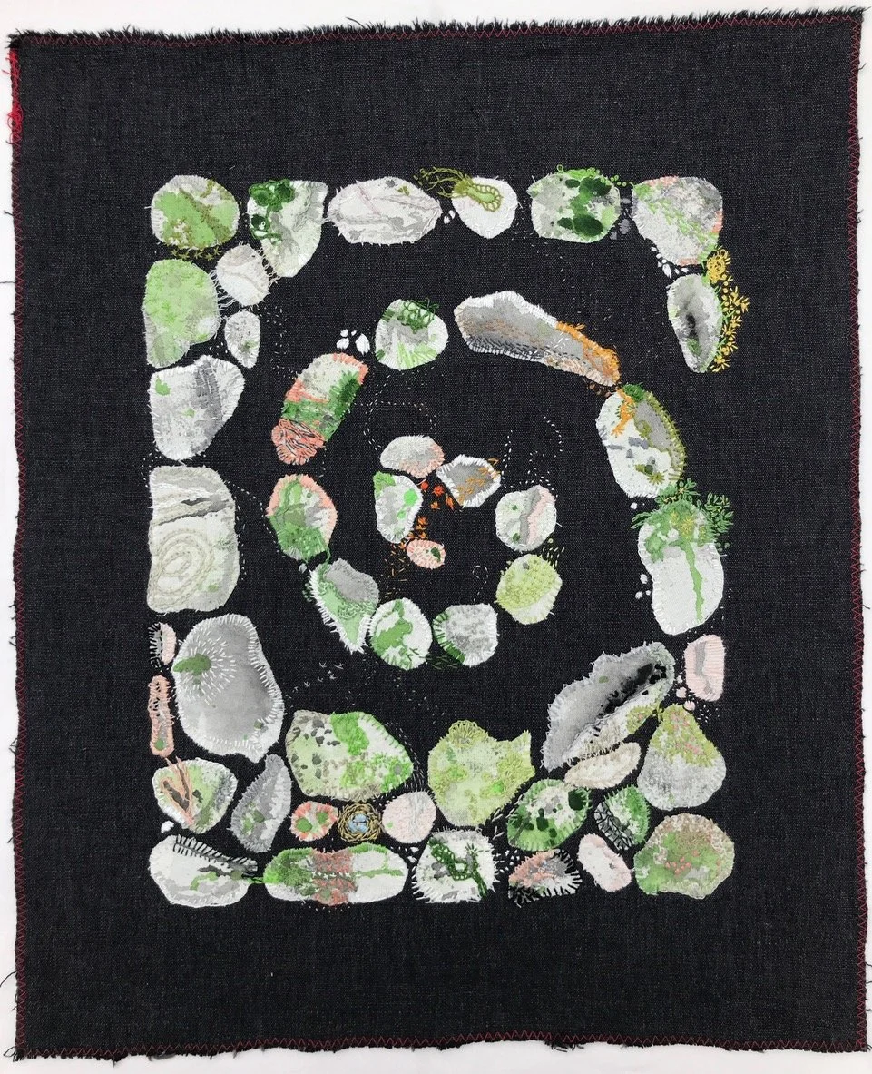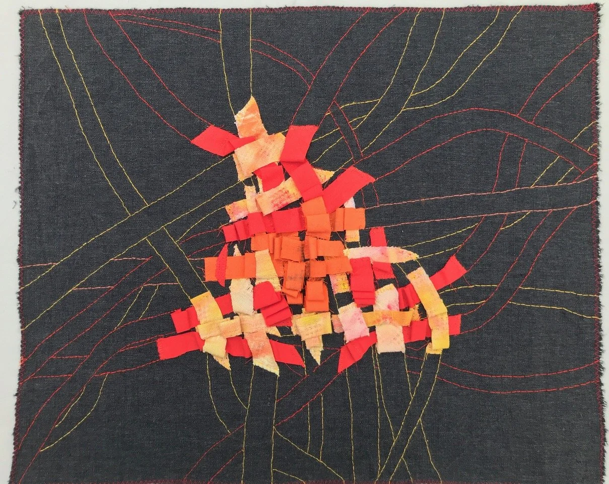 Jag tycker om att pyssla med händerna och har kommit fram till att det textila bildskapandet passar mig bra. Efter hand har jag upptäckt att jag dras till att ge bilderna en mer reliefartad yta, vilket är en kul utmaning. Det blir oftast abstrakta bilder men ibland skapar jag något igenkänningsbart i bilden för att förtydliga tanken bakom.