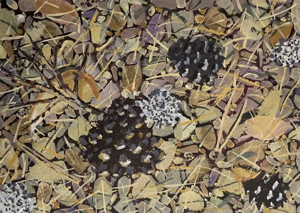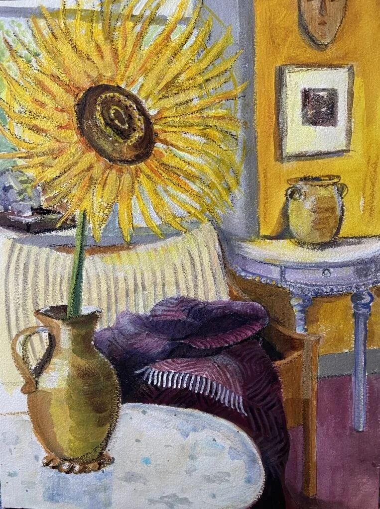 Målar i akryl och akvarell. Målar natur, hus och människor med ett expressivt färg- och formspråk.